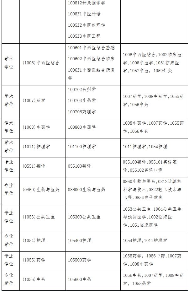 (3)我校各个专业可接受调剂考生的第一志愿一级学科/专业领域范围如下: